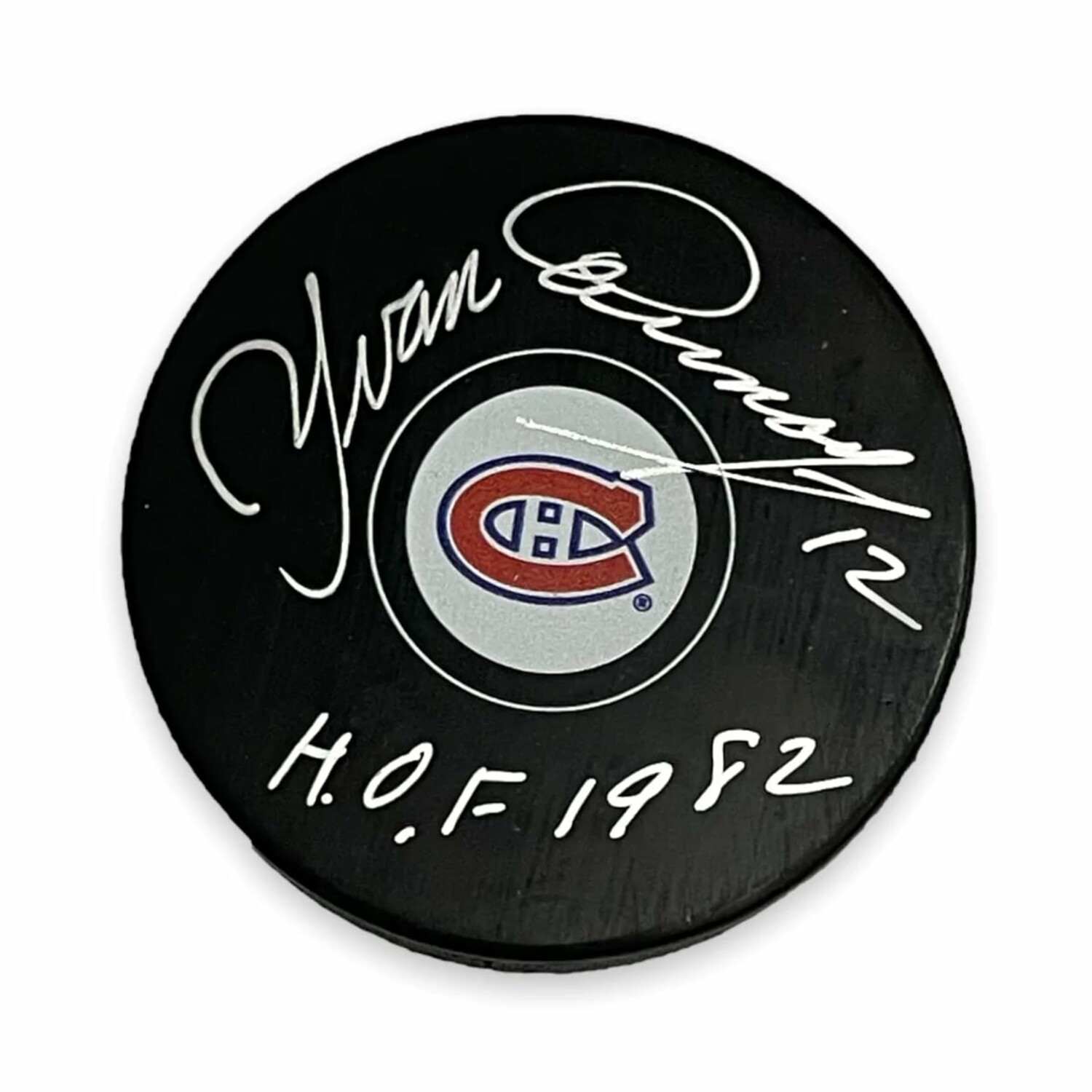 Yvan Cournoyer // Montreal Canadians // Autographed Puck + Inscription