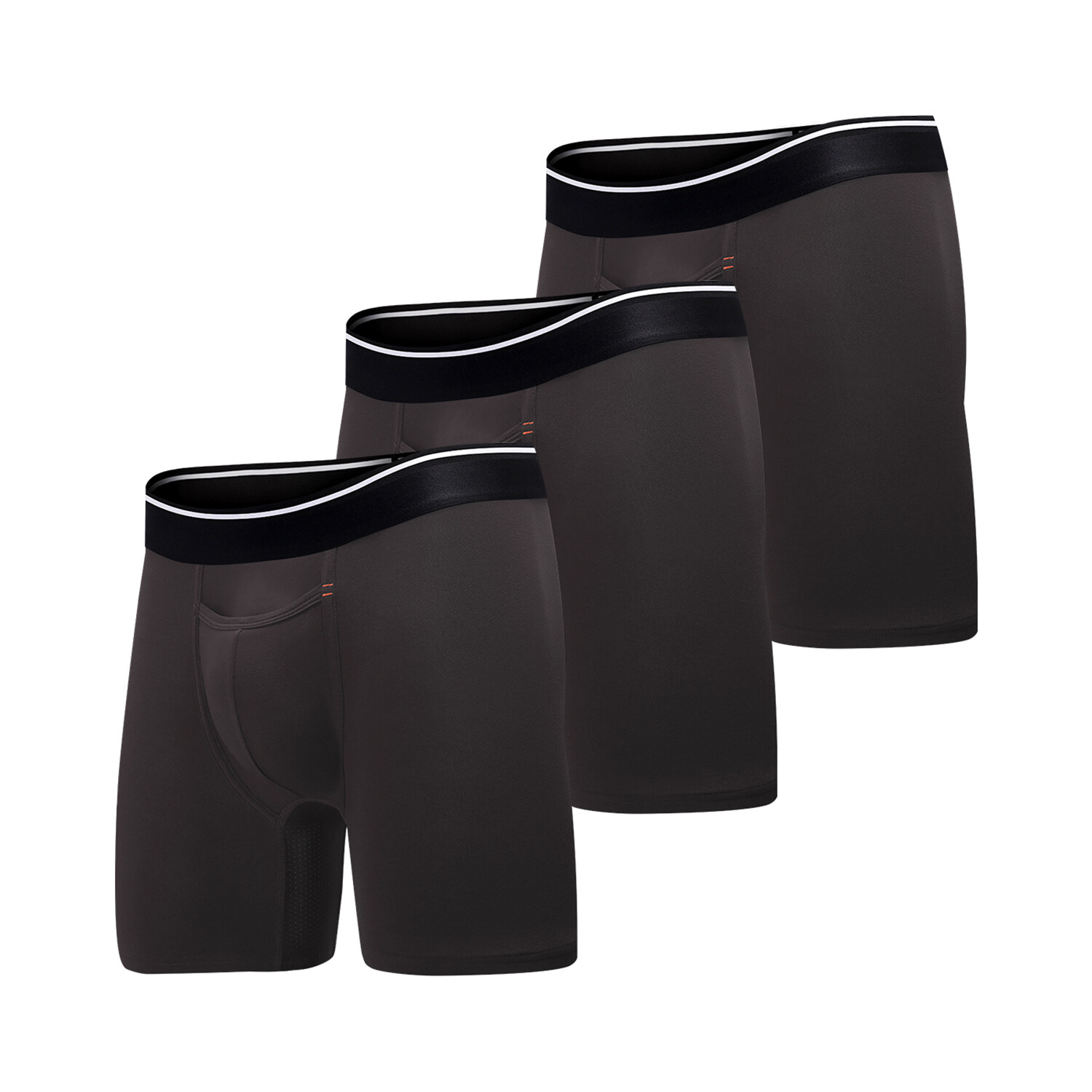 Spacious enough for the anatomy of men (not a Ken doll), these boxers conform naturally to caress you gently—no more “mashing” or awkward re-adjustments. Micro vents between the legs and on the lower back provide more airflow and uncompromising ventilation where you need it most. Reinforced stress points stop rips and tears so that you’re never “that guy” doling out wisdom with raggedy underwear. The thick, no-roll waistband stays put on your waist and doesn’t roll over or slide down. And for a faster, more natural movement when nature calls, the quick-access horizontal fly delivers tactical military precision.