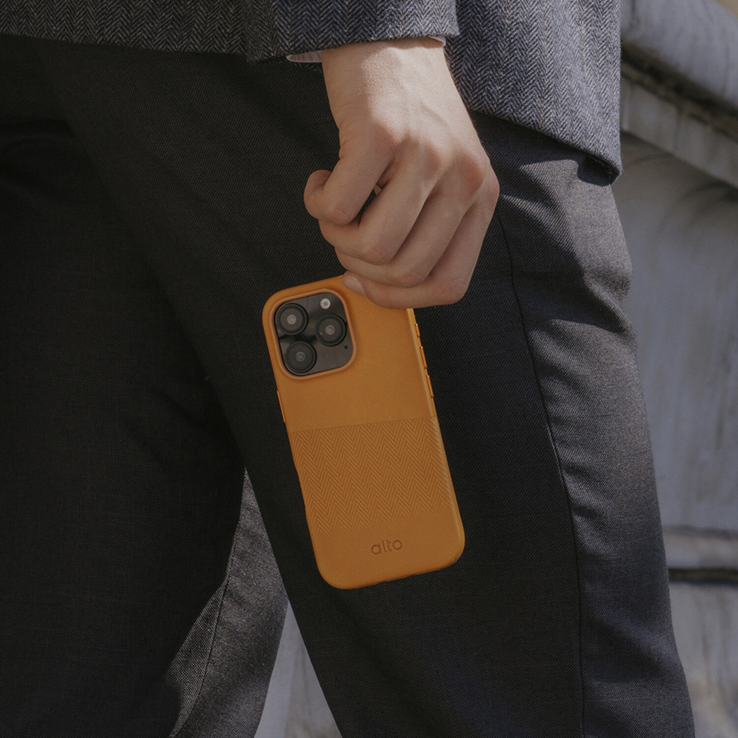 Blending vintage style with modern protection, the Alto Herring Series Leather iPhone Case brings warmth and artistry to your everyday carry. Hand-crafted from Italian full-grain leather and embossed with a refined herringbone pattern, this case delivers elevated design without sacrificing function. MagSafe-compatible and drop-tested, it’s made to protect—beautifully.