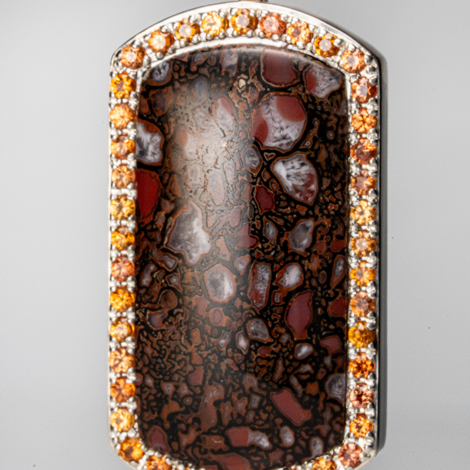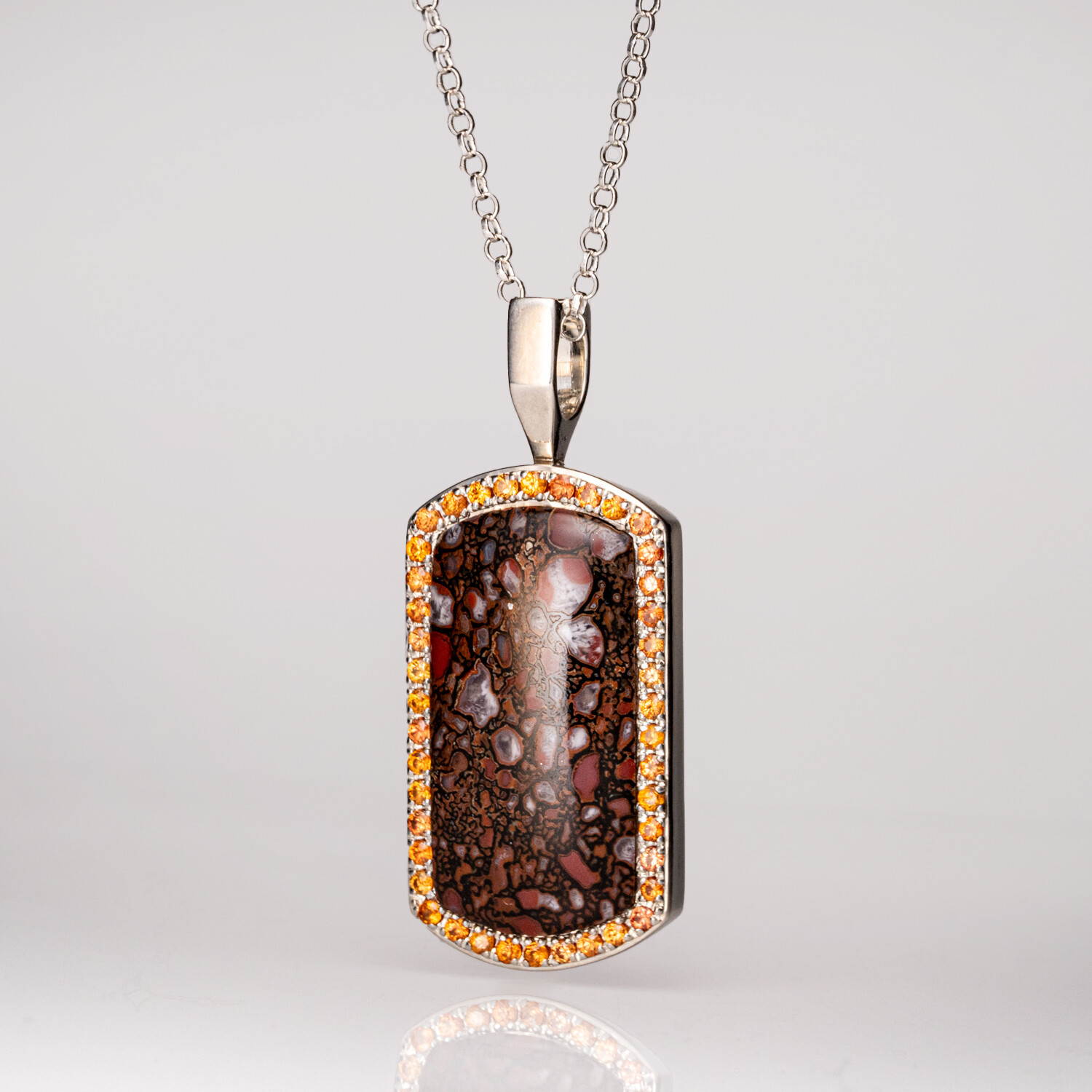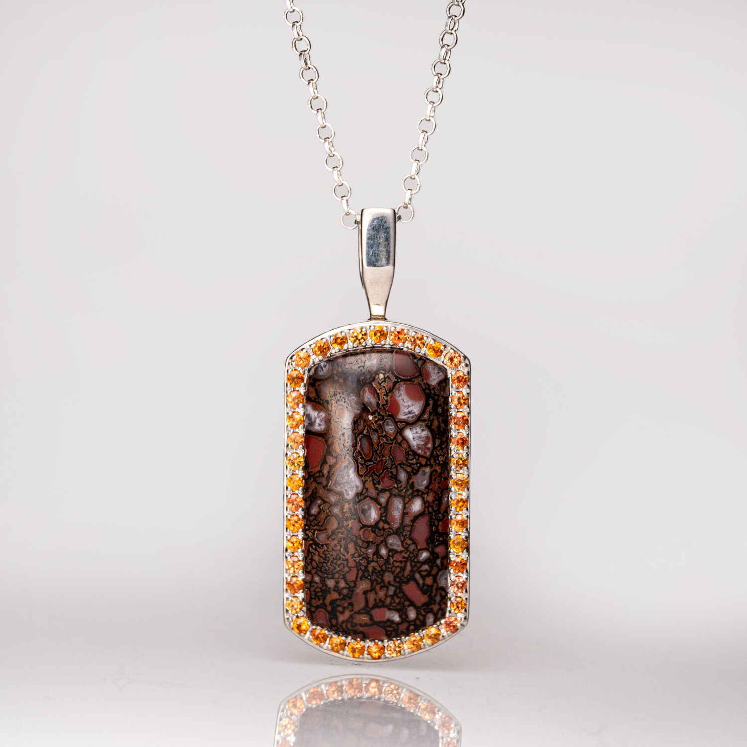 Genuine Dinosaur Agate Tag Pendant and YellowSapphire with 18" Sterling Necklace