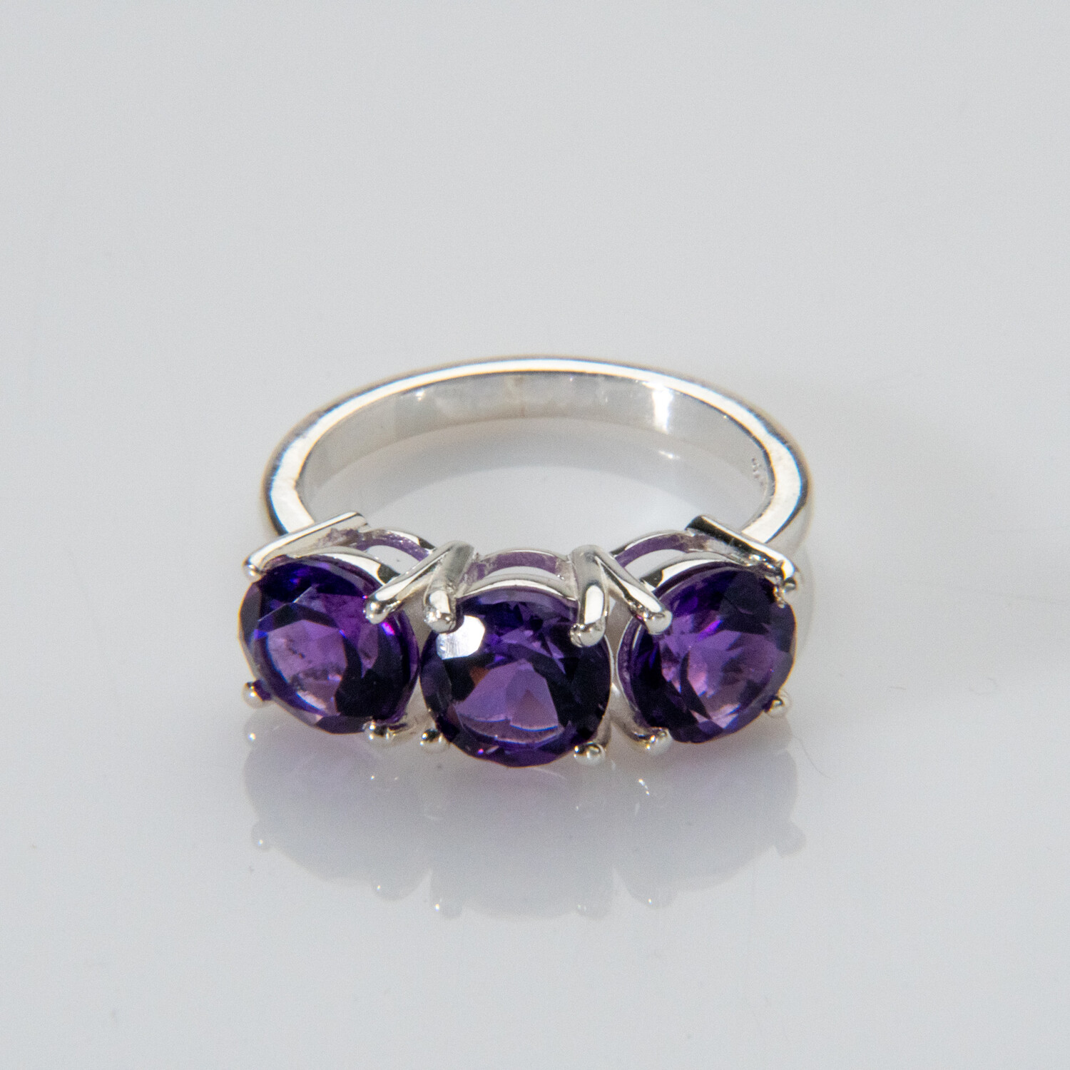 Beautiful high quality round shaped Amethyst gemstone in sterling silver Ring