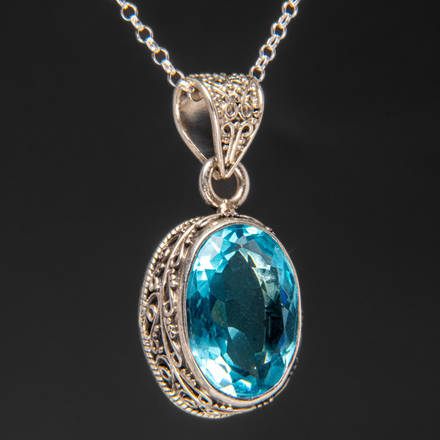 Genuine Sterling Silver Blue Topaz Gemstone Pendant with 18" Sterling Silver Chain // v.1