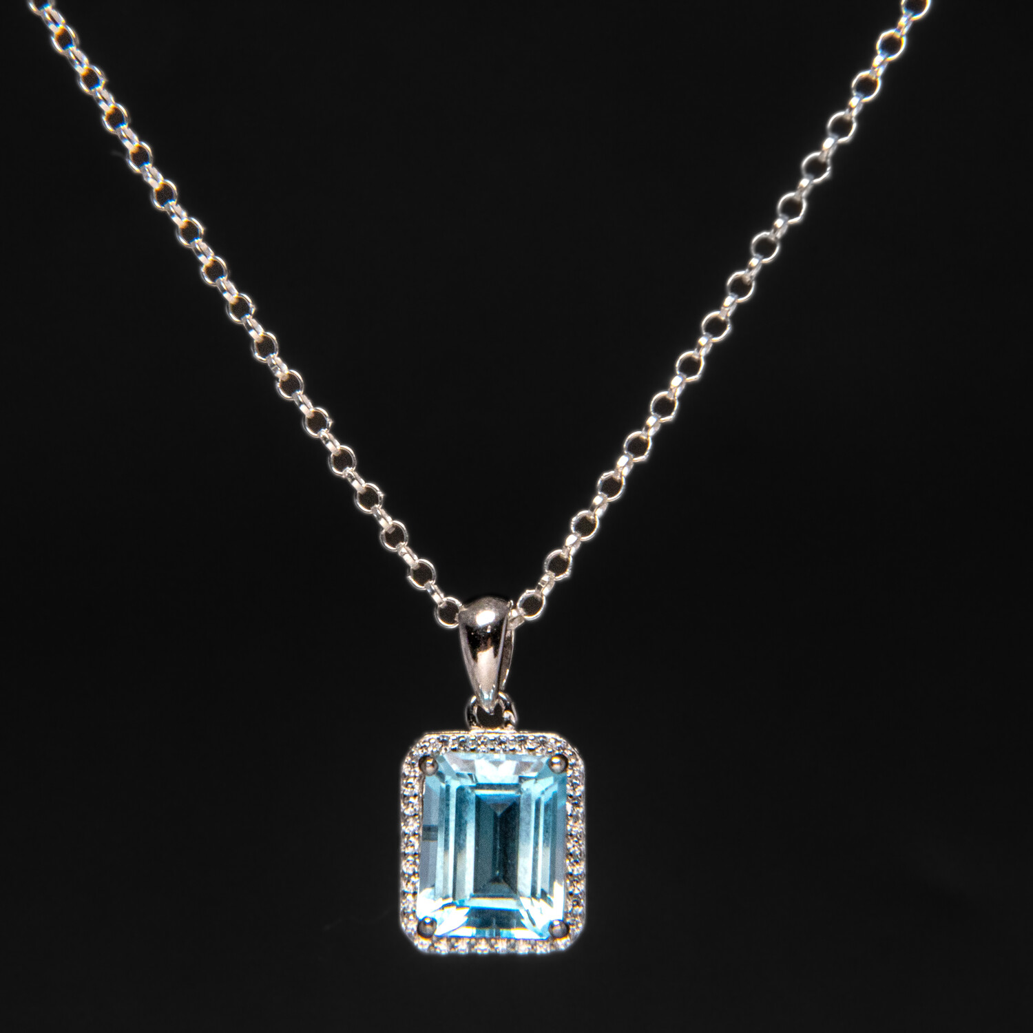 Genuine Sterling Silver Blue Topaz Gemstone Pendant with 18" Sterling Silver Chain // v.2