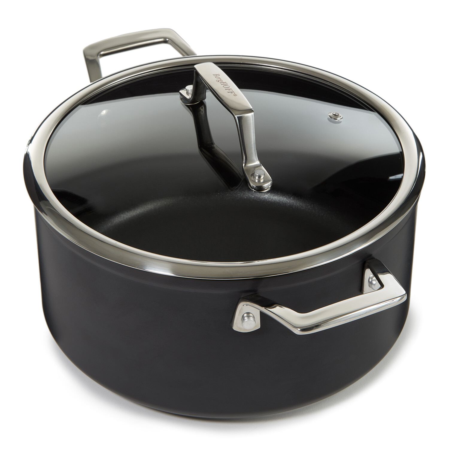 BergHOFF Essentials Nonstick Hard Anodized 10" Stockpot 5.3qt. With Glass Lid // Black