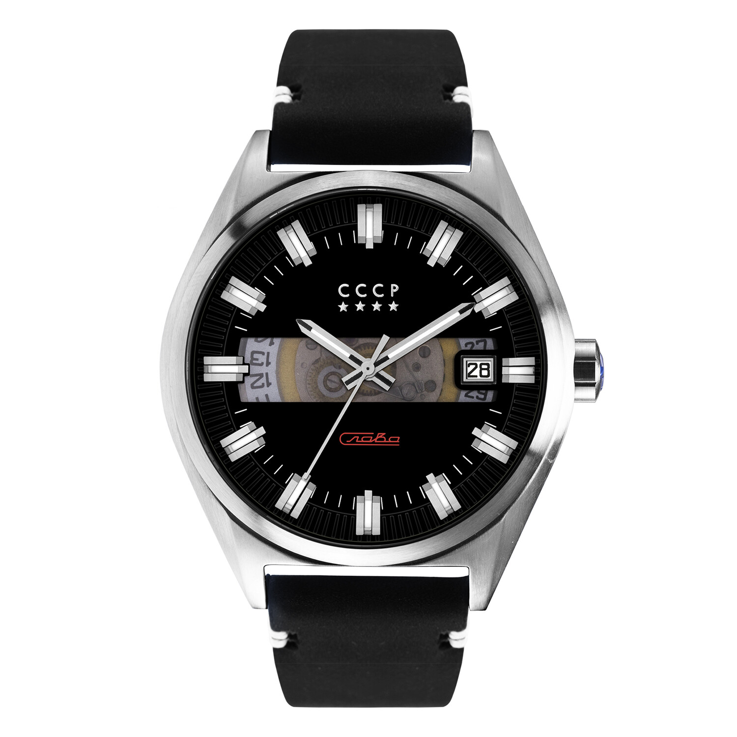COLLECTION: SHCHUKA MODEL: CP-7030-01 MOVEMENT: (SLAVA#2427) MECHANICAL AUTOMATIC CASE MATERIAL: STAINLESS STEEL CASE DIAMETER (MM): 43 CASE THICKNESS (MM): 15.5 CASE SHAPE: ROUND CASE COLOR: STAINLESS STEEL DIAL COLOR: B:ACK BAND: GENUINE LEATHER STRAP BAND COLOR: BLACK BUCKLE: STRAP BUCKLE BAND WIDTH (MM): 22 WATER RESISTANCE: 5 ATM WATCH WEIGHT (G): 80 WARRANTY: 2 YEARS