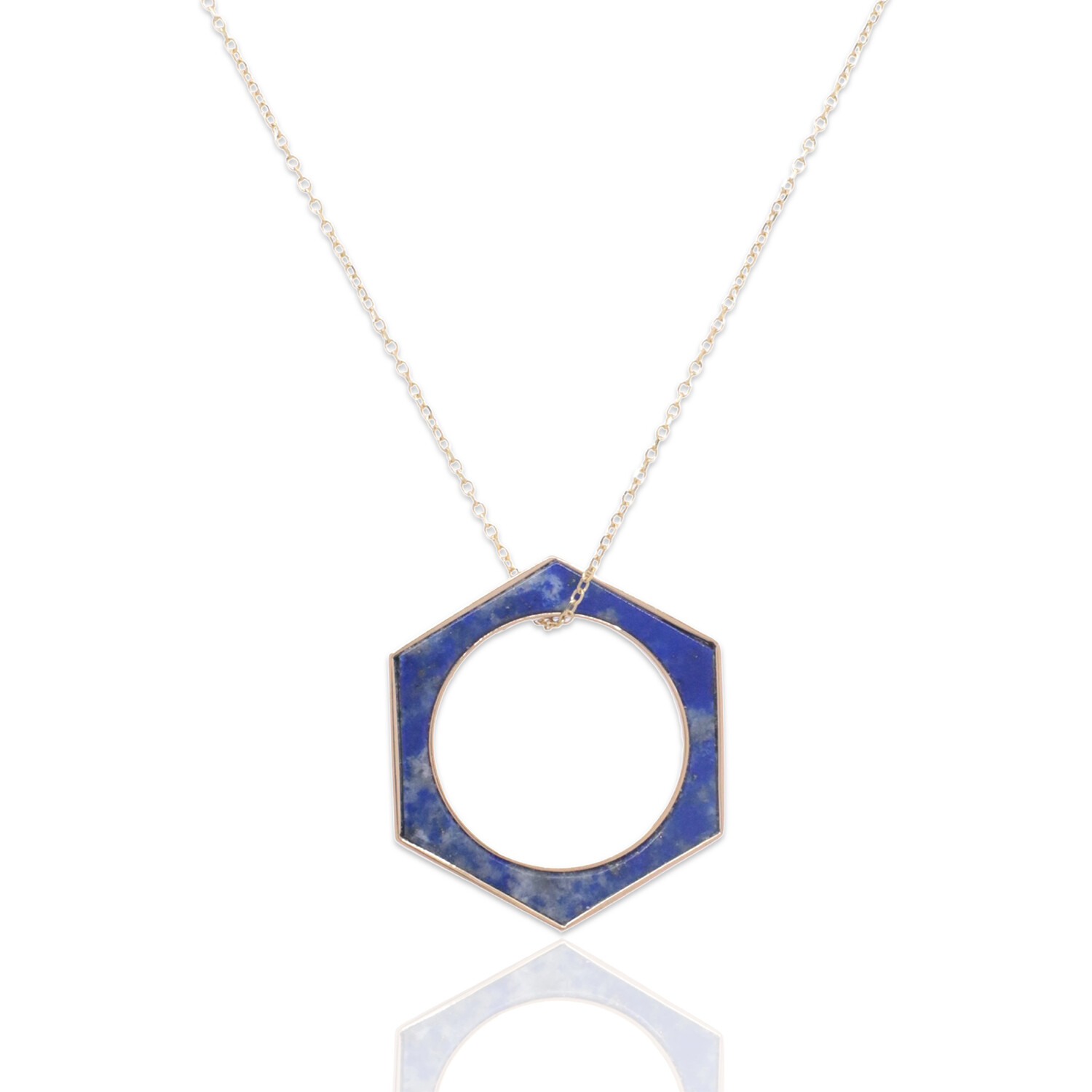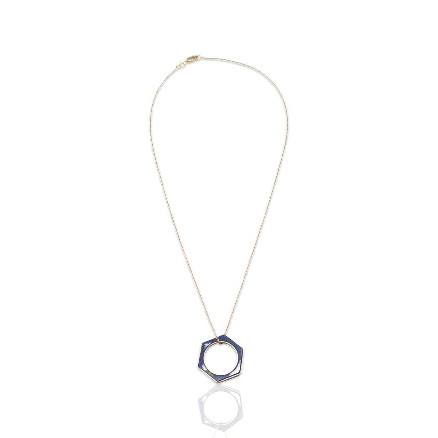 Fine Jewelry // 18K Yellow Gold Hexagon Lapis Ring + Necklace // Ring Size: 5.75 + 16" // New
