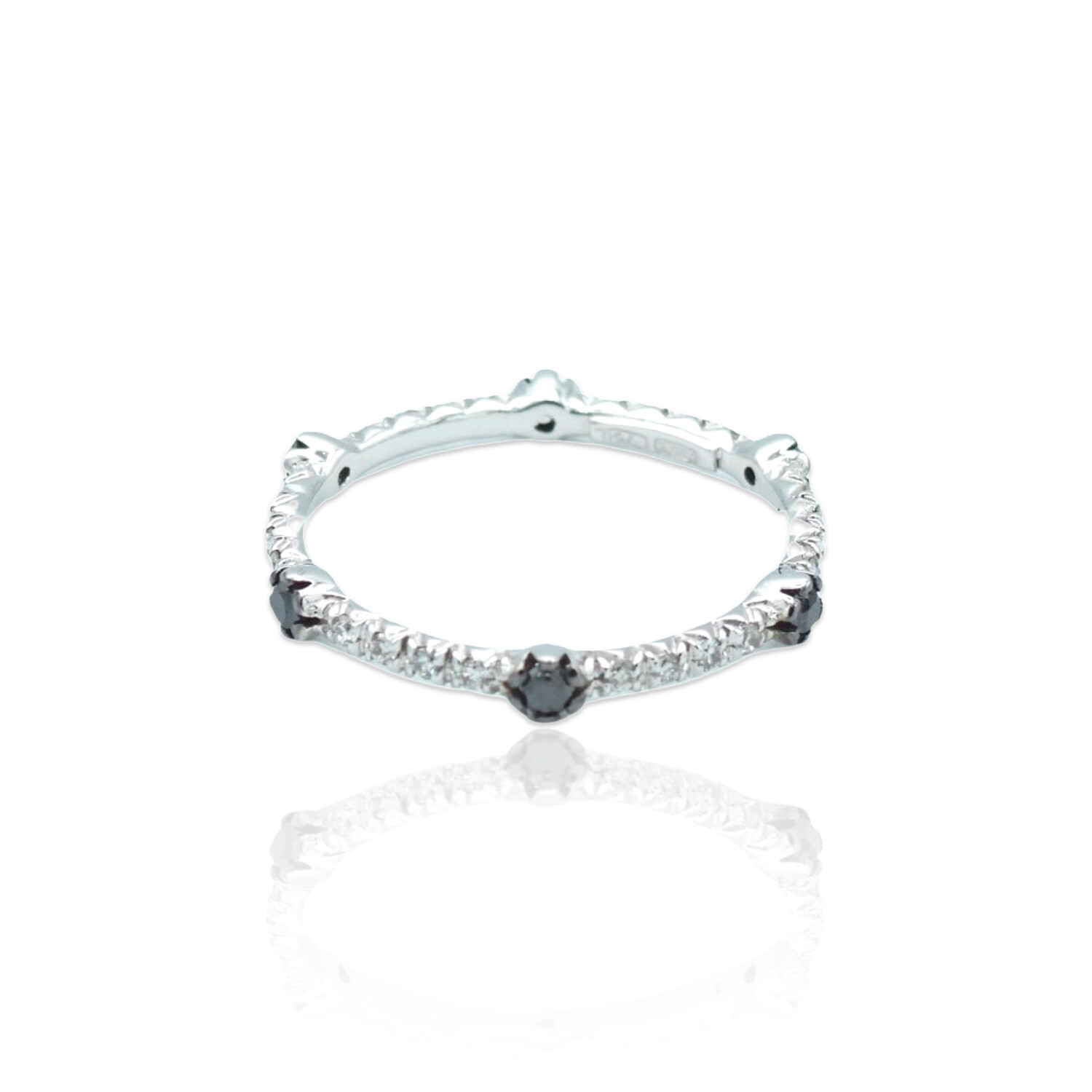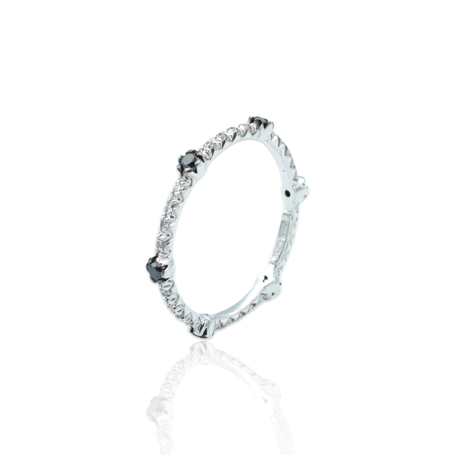Superoro // 18K White Gold White + Black Diamond Ring I // Ring Size: 6.75 // New