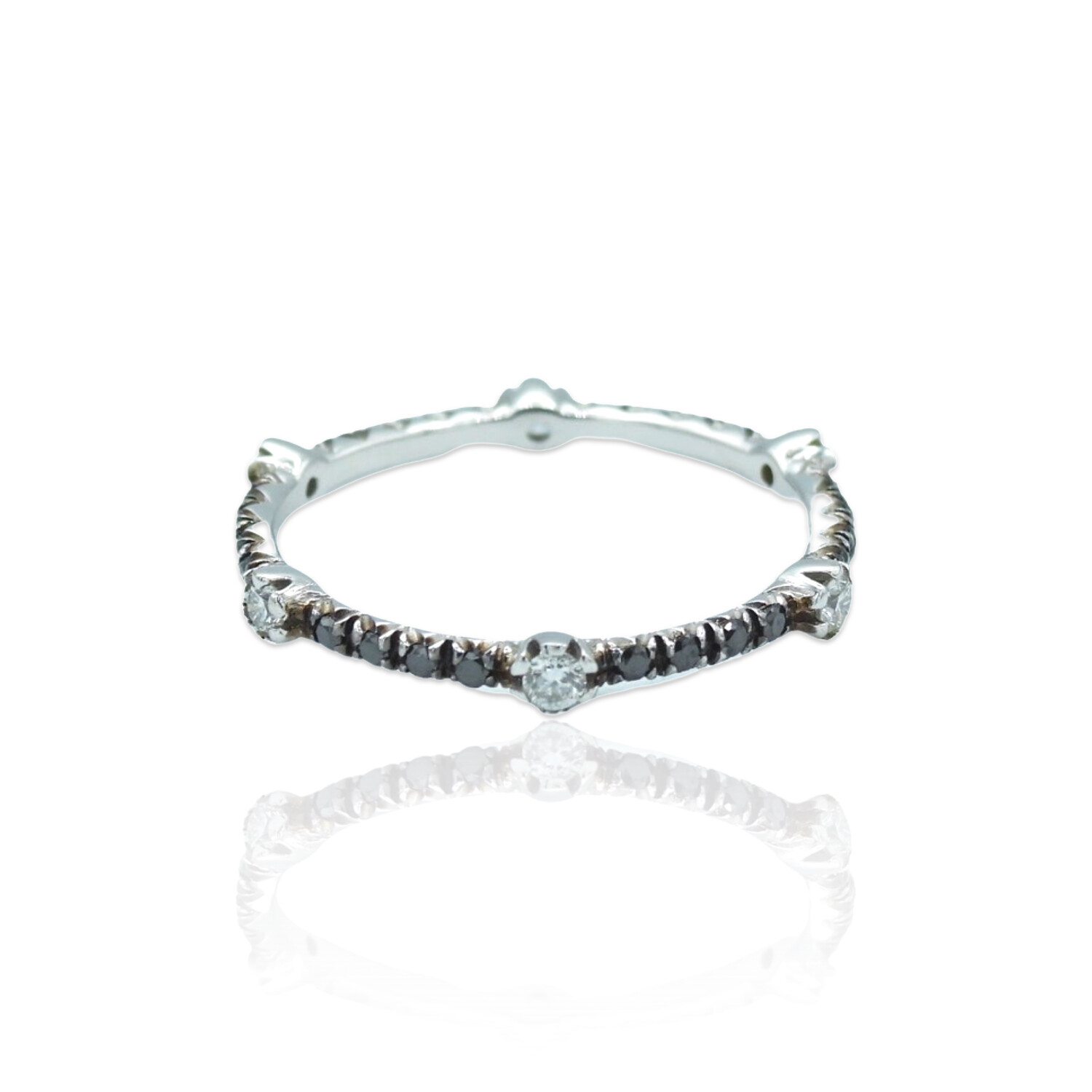 Superoro // 18K White Gold White + Black Diamond Ring // Ring Size: 6.75 // New