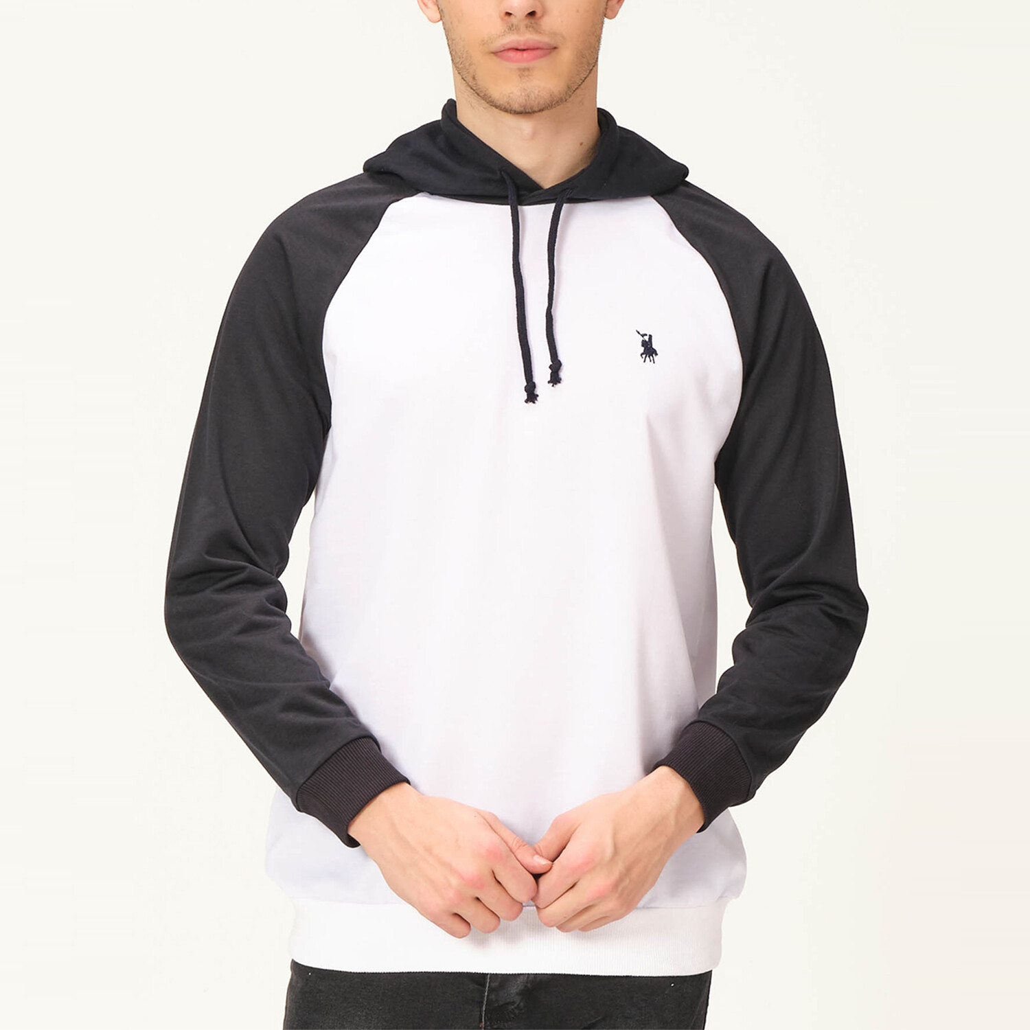 Myles Baseball-Sleeve Hoodie // White + Dark Blue