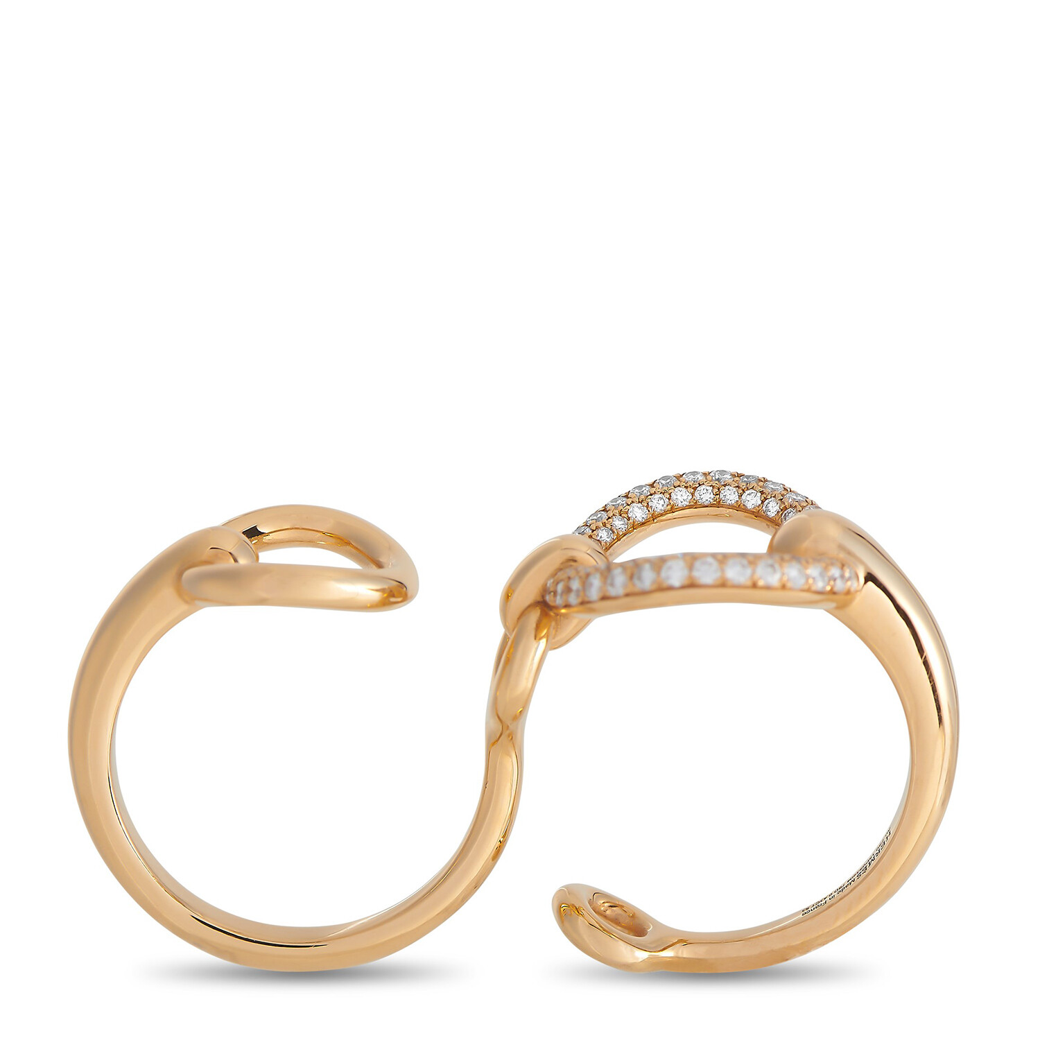Hermes // Filet d'Or 18K Rose Gold Diamond Double Ring // Ring Size: 6 // Estate