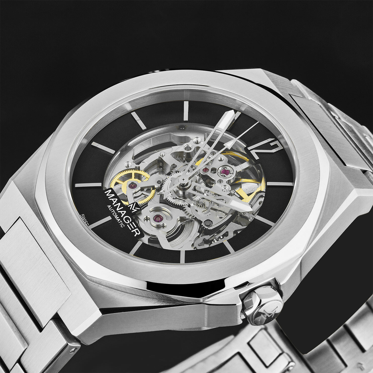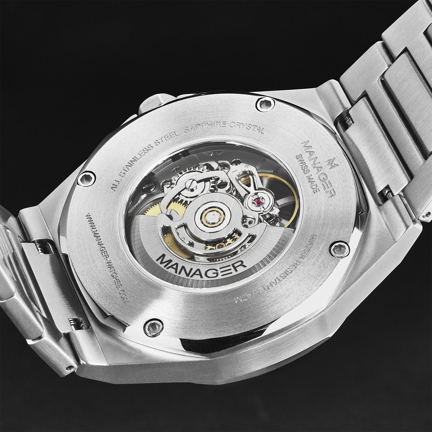 Based in Canton of Jura, Manager is a family business established in the center of Swiss watchmaking tradition and heritage. Their elegant designs bring a sporty sensibility to timepieces imbued with high-quality Swiss craftsmanship and uncompromising innovation.