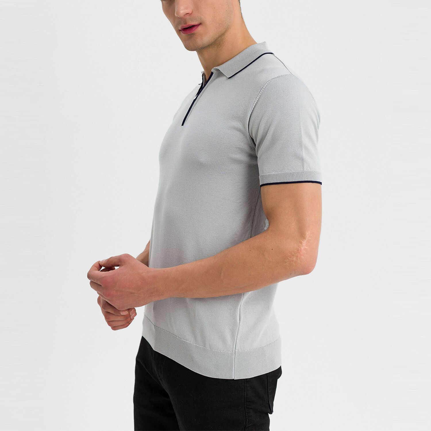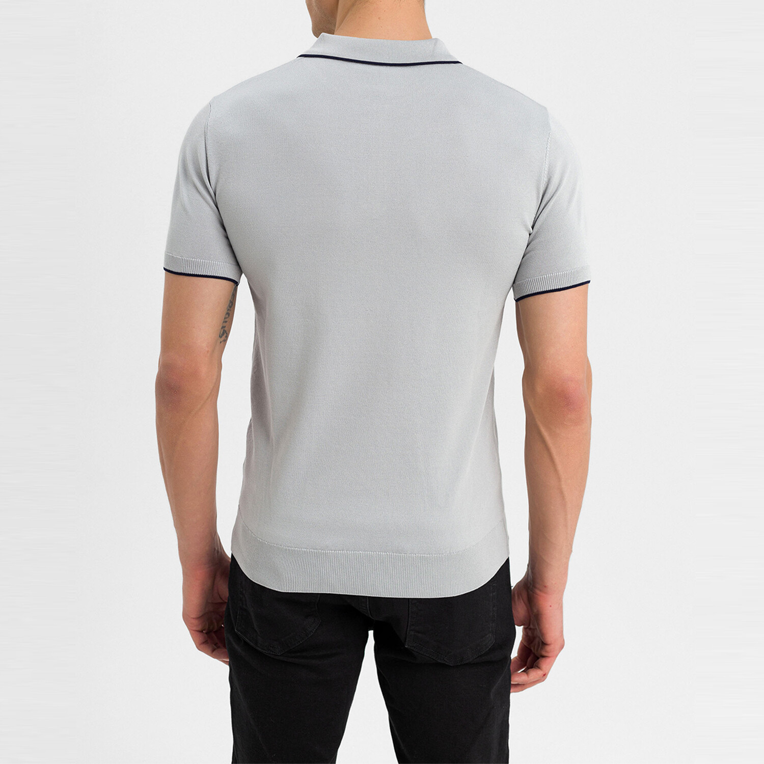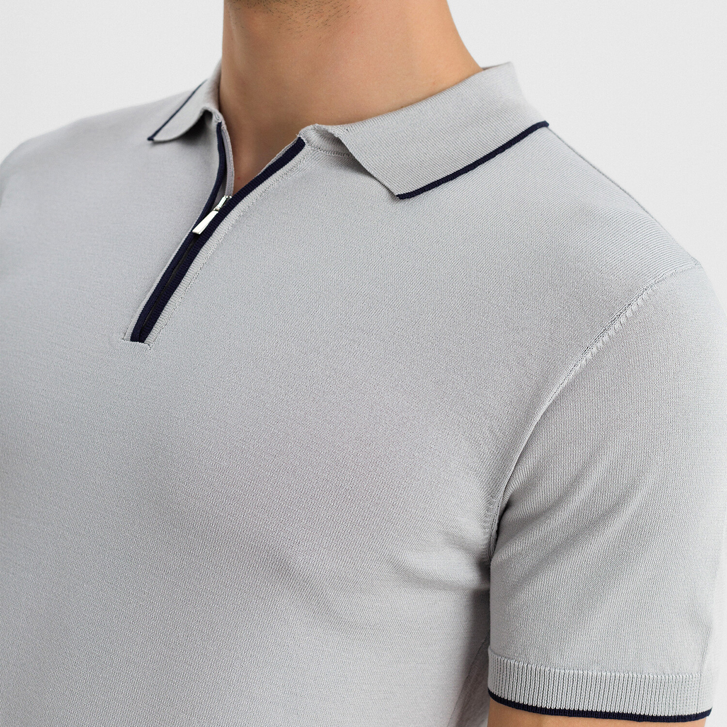 Stellan Contrast Trim Zip-Up Polo Shirt // Grey