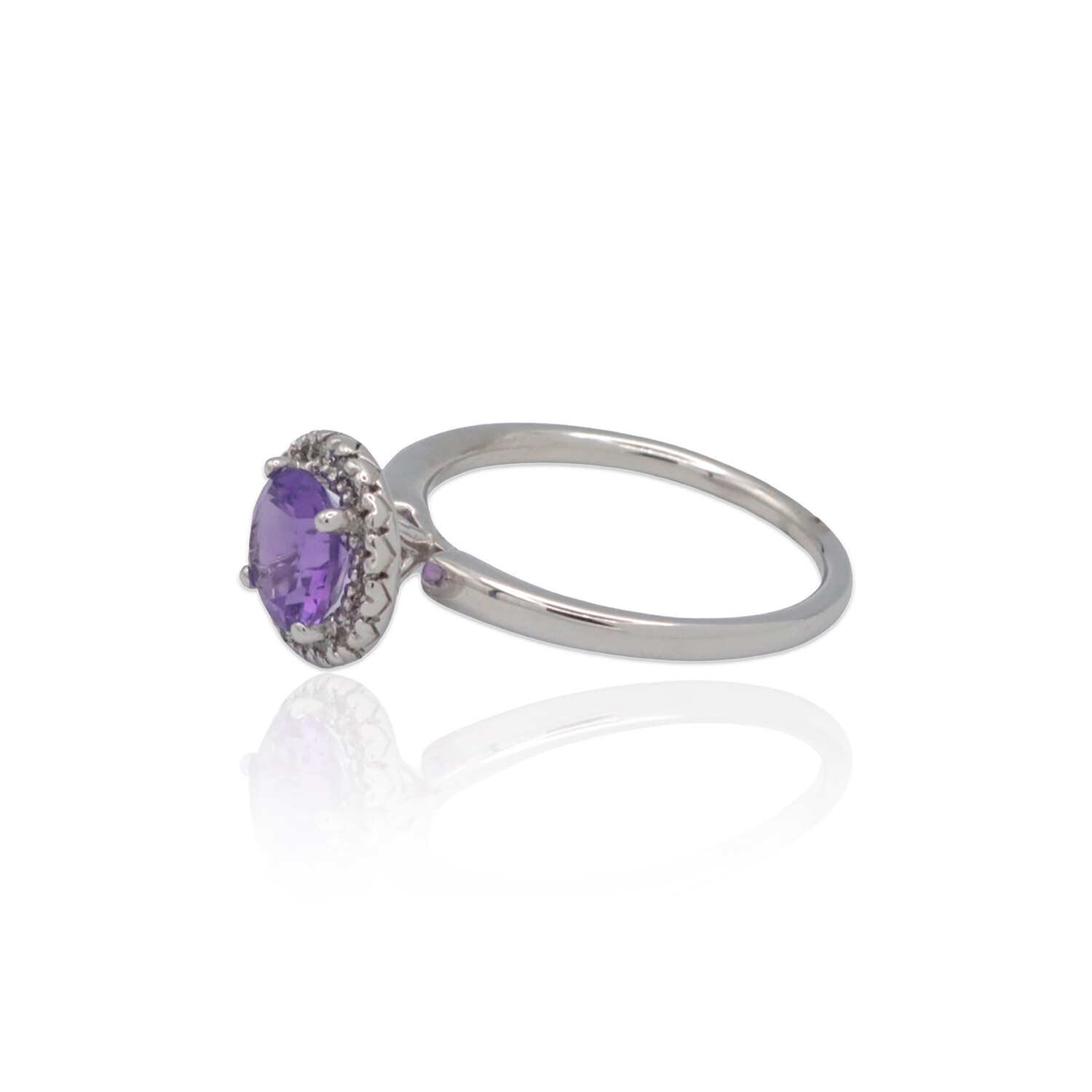 14K White Gold Diamond + Amethyst Ring // Ring Size: 7 // New