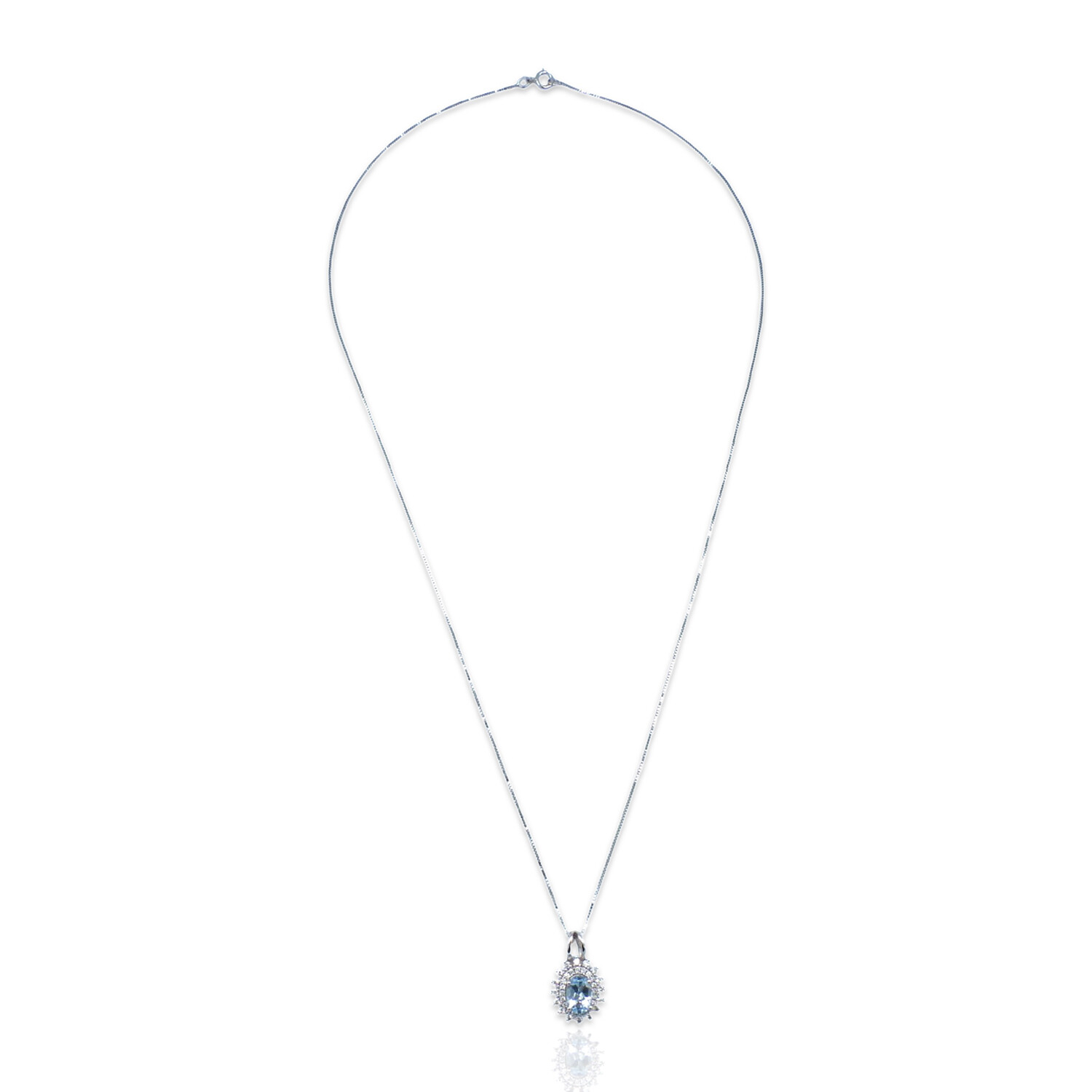 14K White Gold Diamond + Aquamarine Necklace // 18" // Pre-Owned