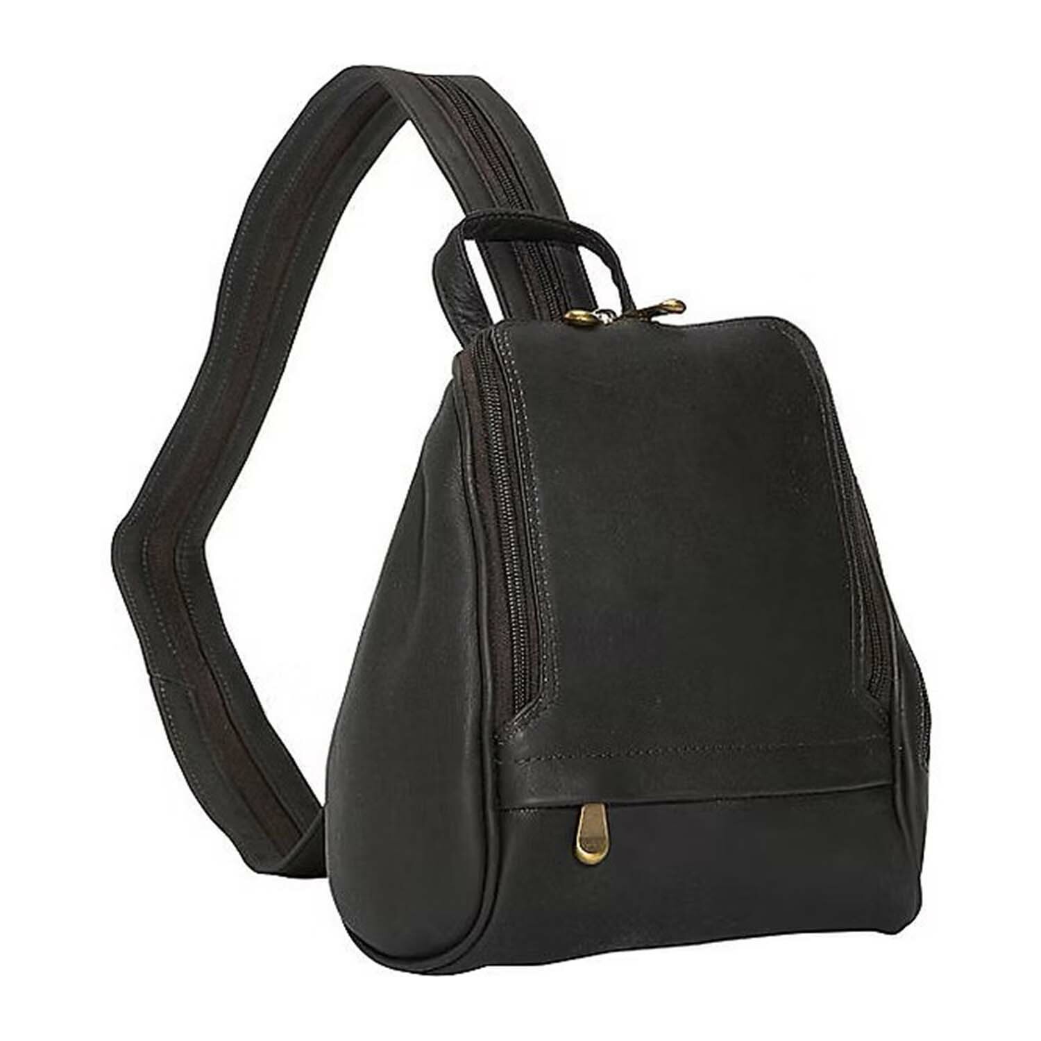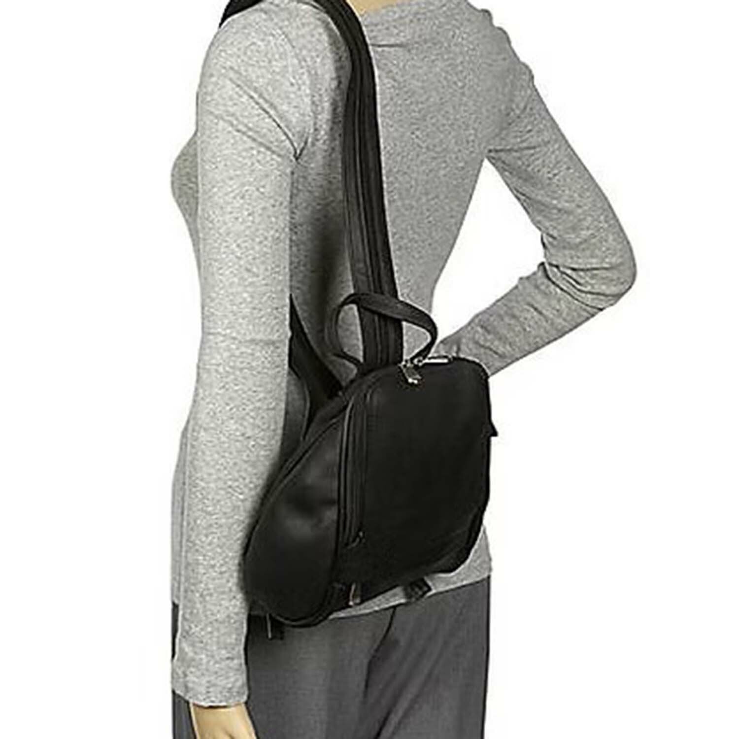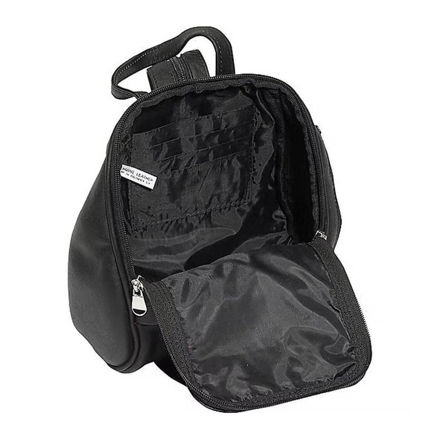 Inside there are four card pockets. Outside, there's a front and side zippered pocket. Unique zippered sling shoulder strap unzips to form two backpack straps.