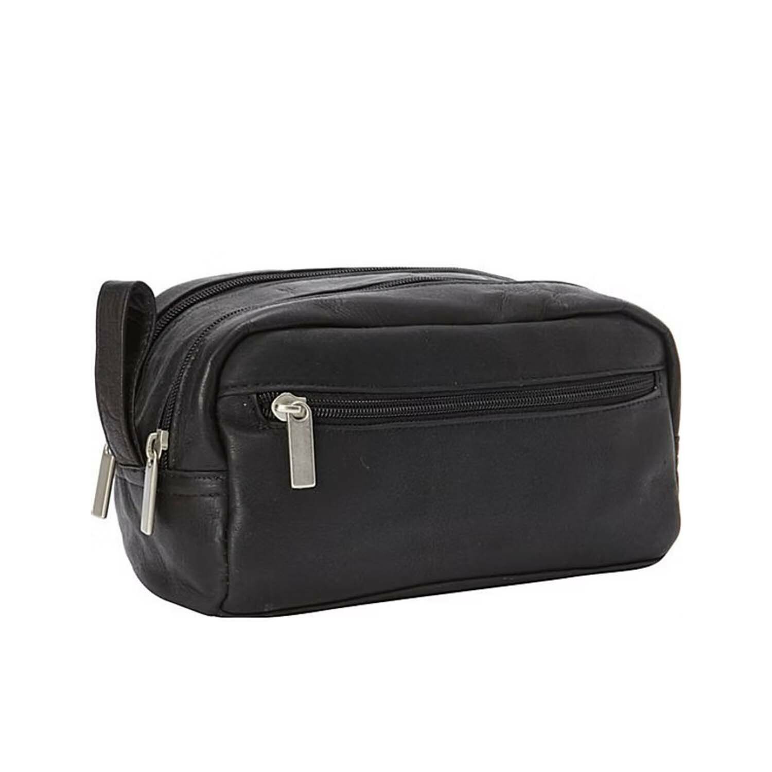 Genuine cow hide natural leather Small triple Zip Shave Kit for essential personal items.