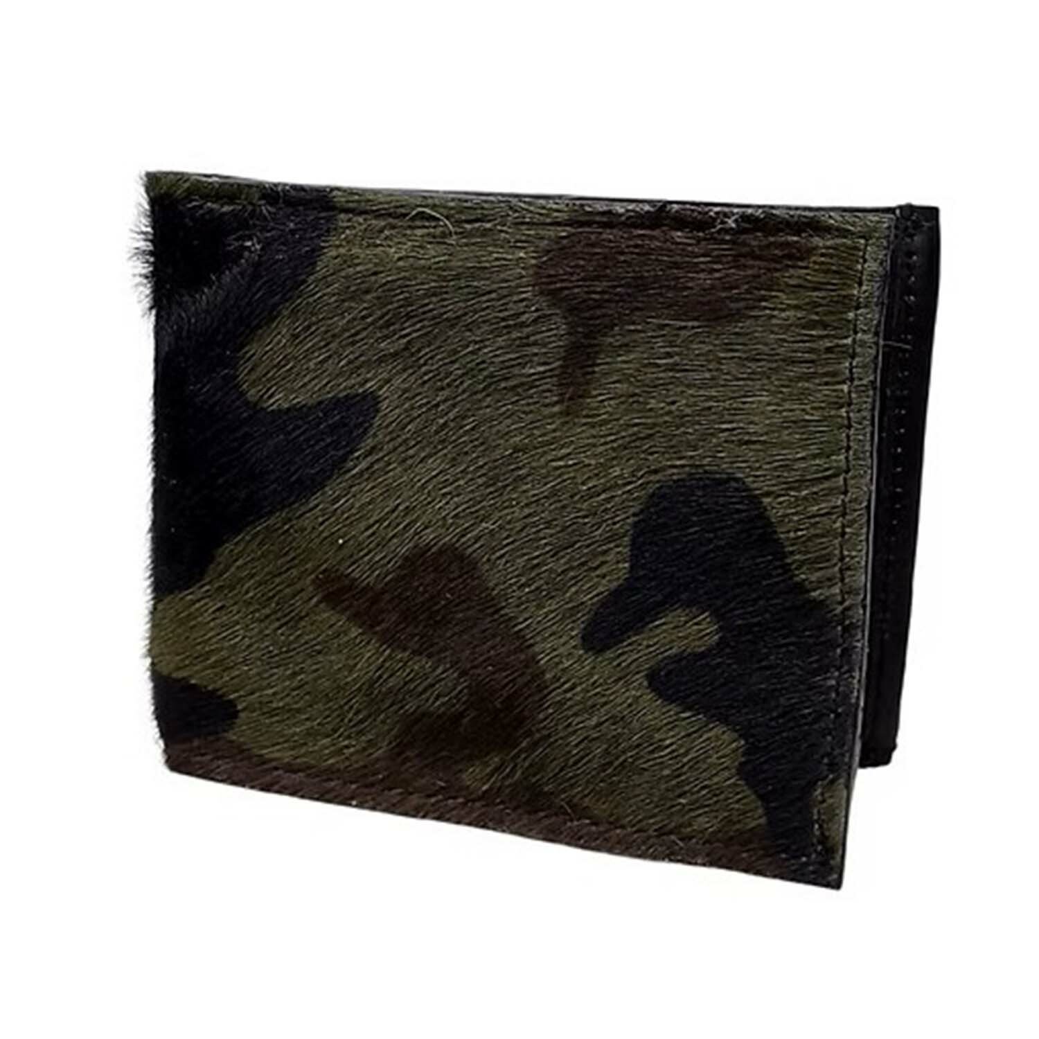Genuine Cow Hide Fur & Natural Leather Small Bifold Wallet