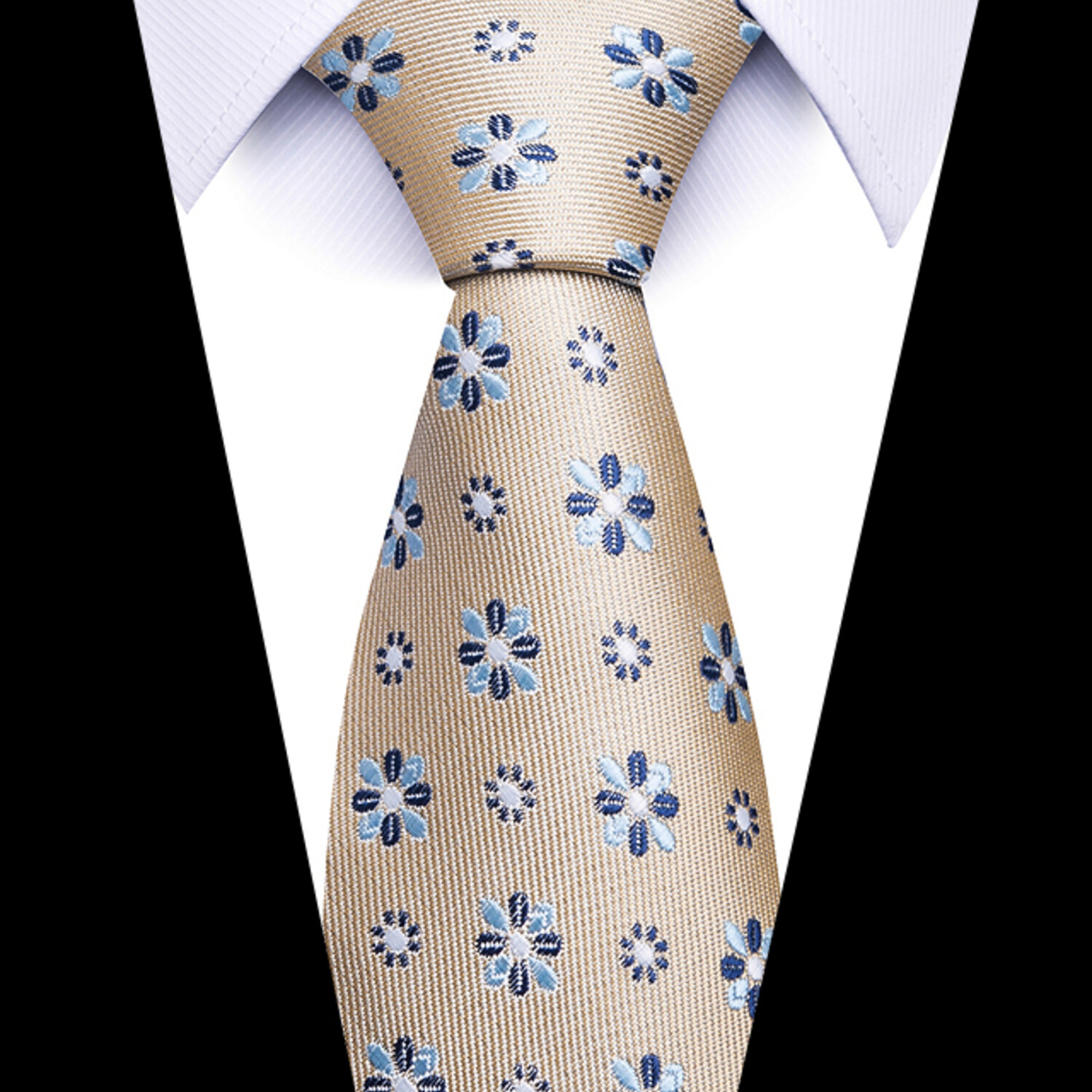 Formal Men’s Necktie // Sand Gold Blue Petals