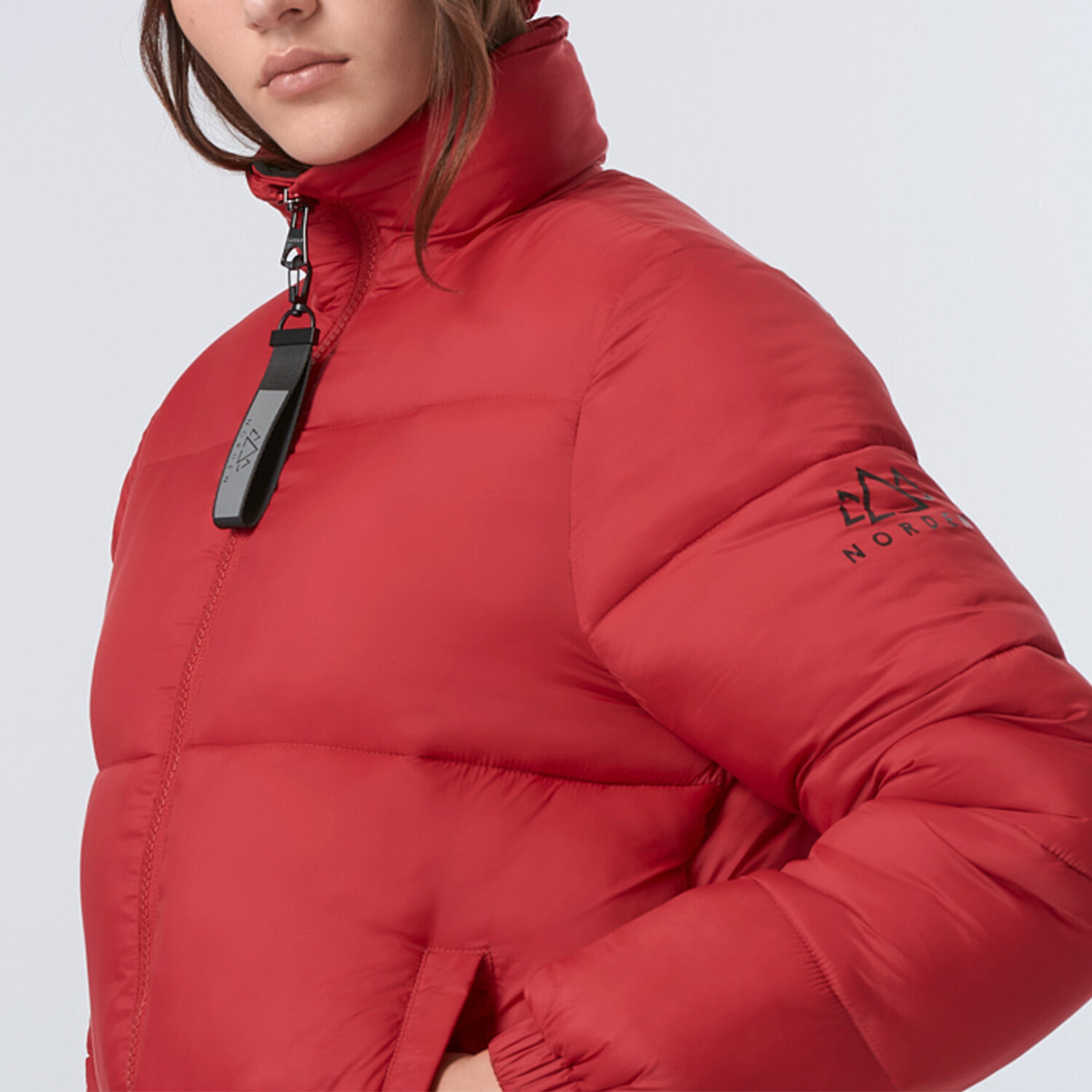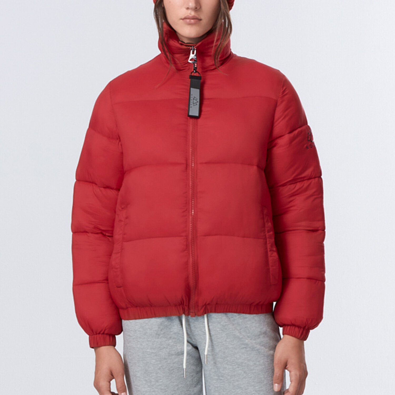 Functional and sporty, Mia brings fun and sustainability to winter. With a short cut, a snug, pillowy collar, and elastic cuffs, this warm puffer is built for outdoor versatility and style.