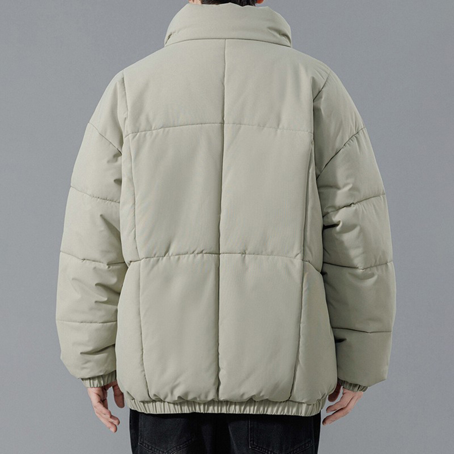 High Collar Big Square Pattern Puffer Jacket // Gray