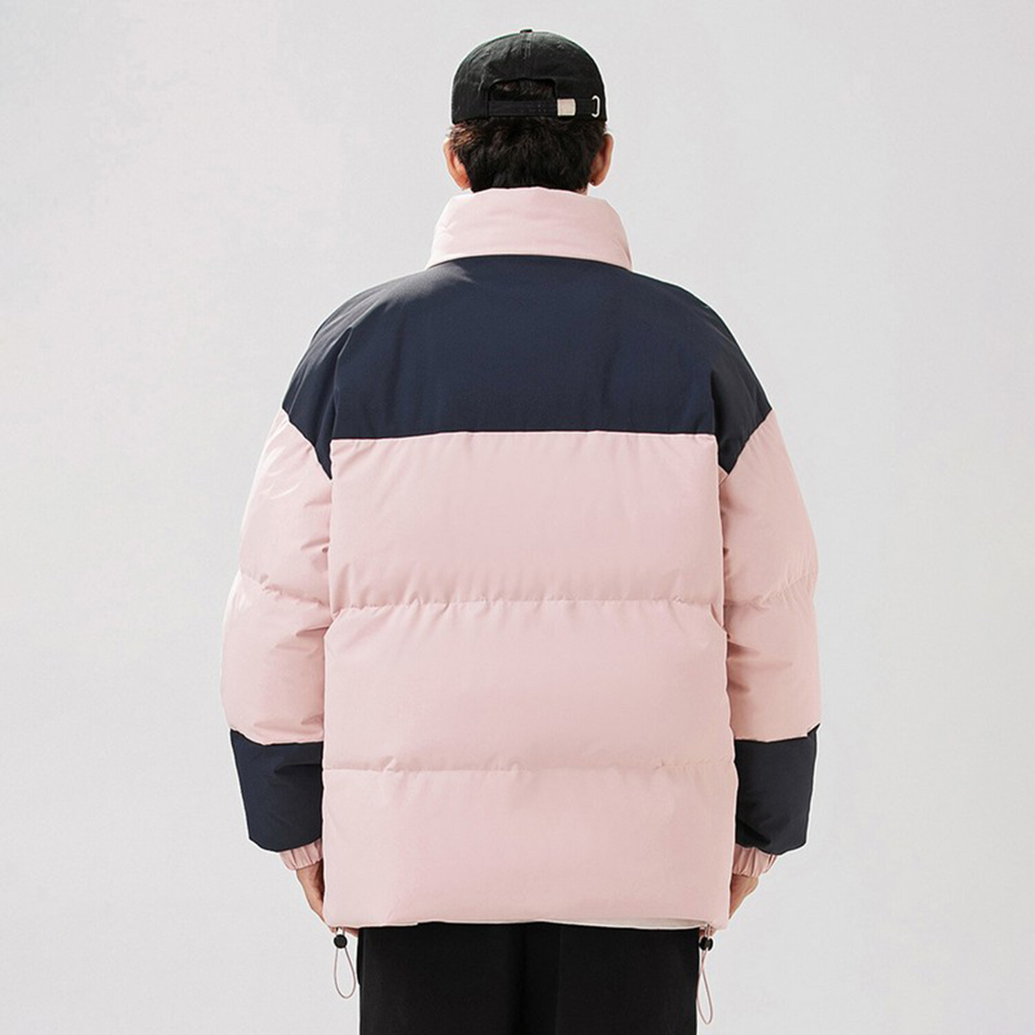 High Collar Color Blocked Puffer Jacket // Pink + Blue