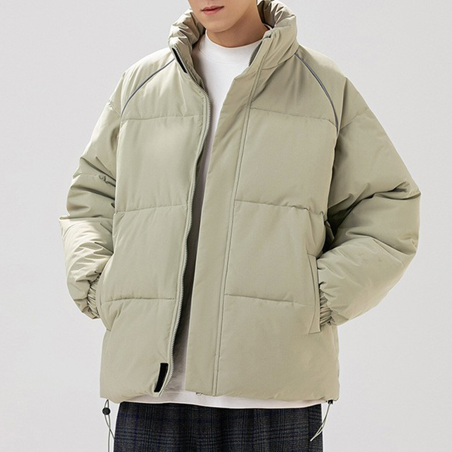 High Collar Shoulder Detail Puffer Jacket // Gray Green
