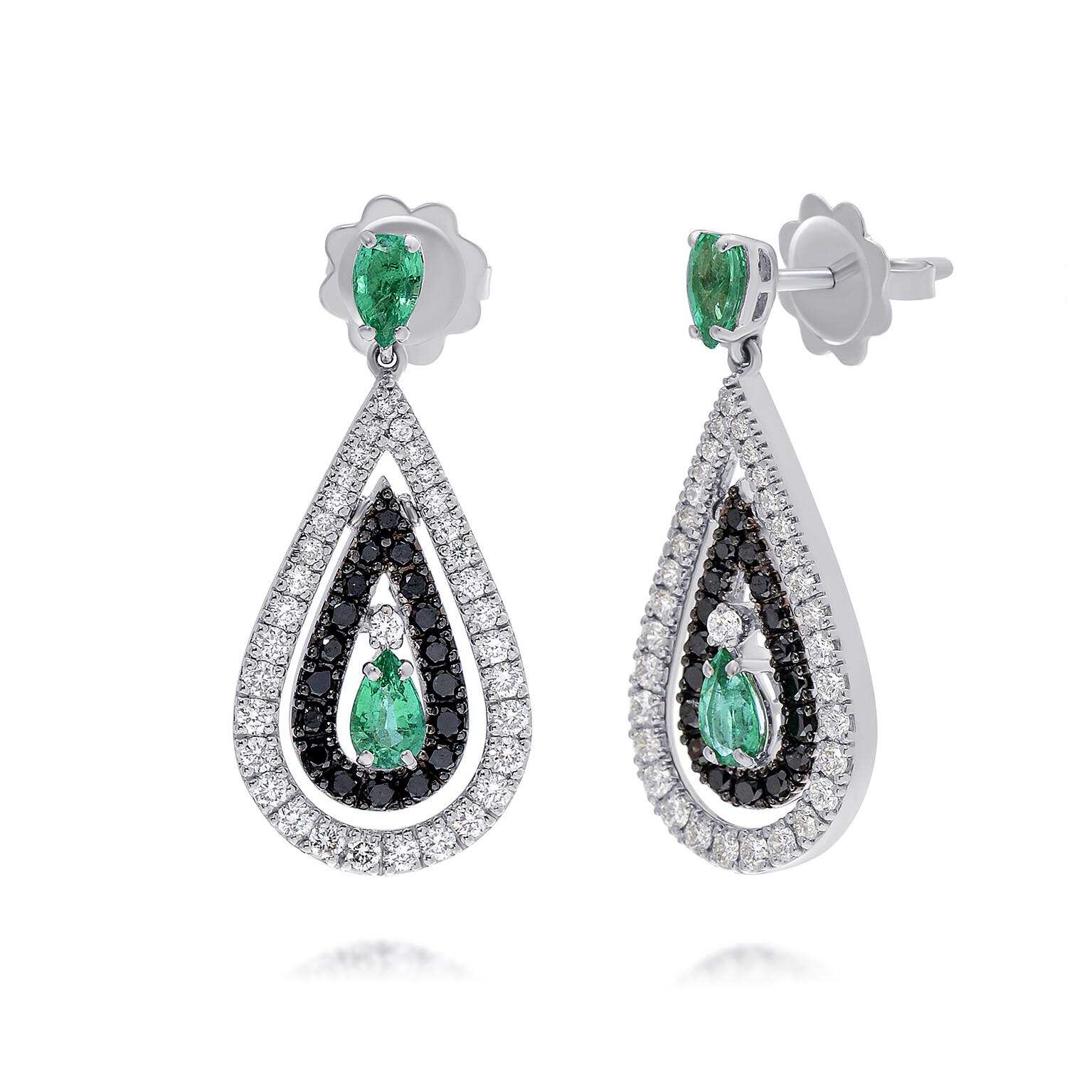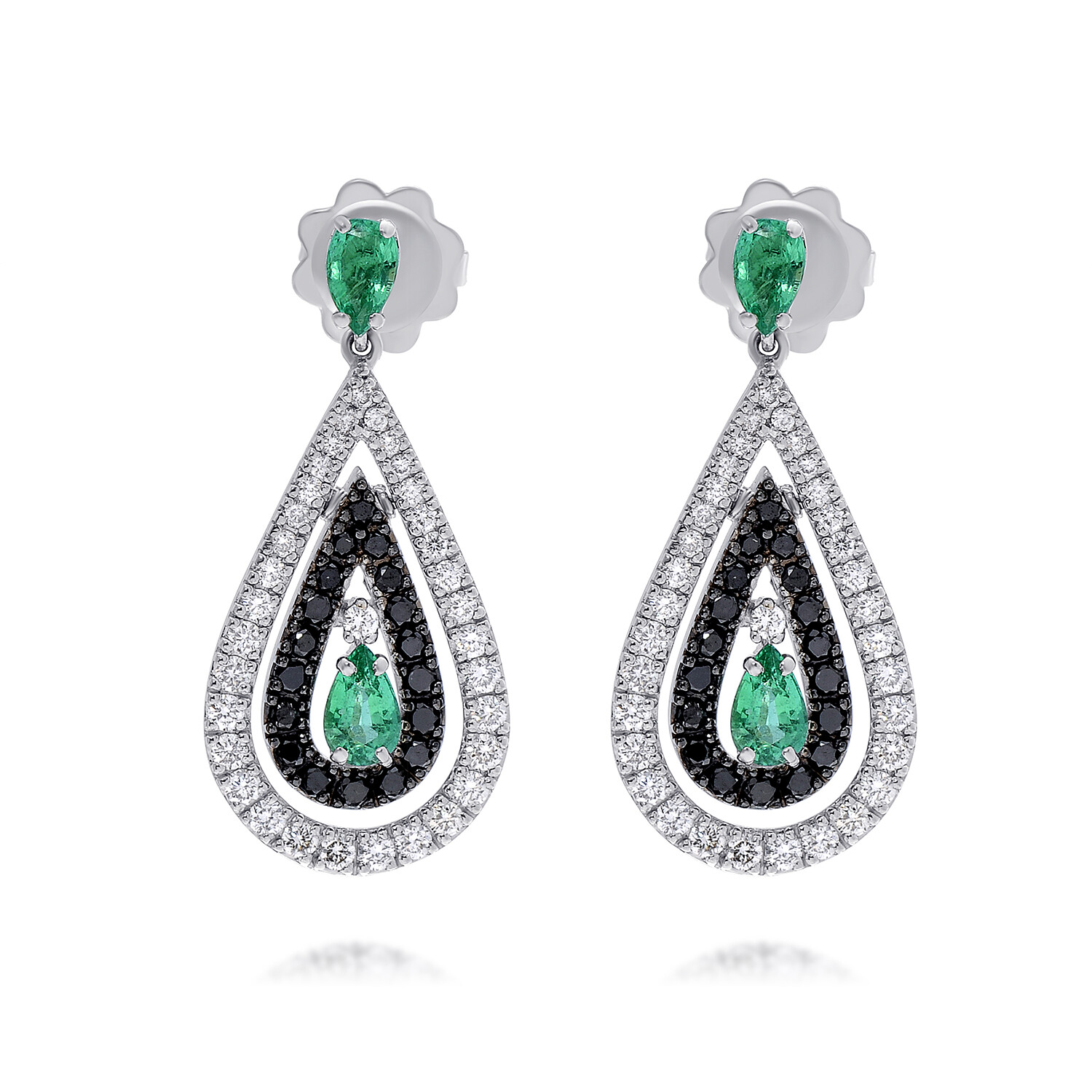 Damiani 18K White Gold Emerald + Black and White Diamonds Drop Earrings // Store Display
