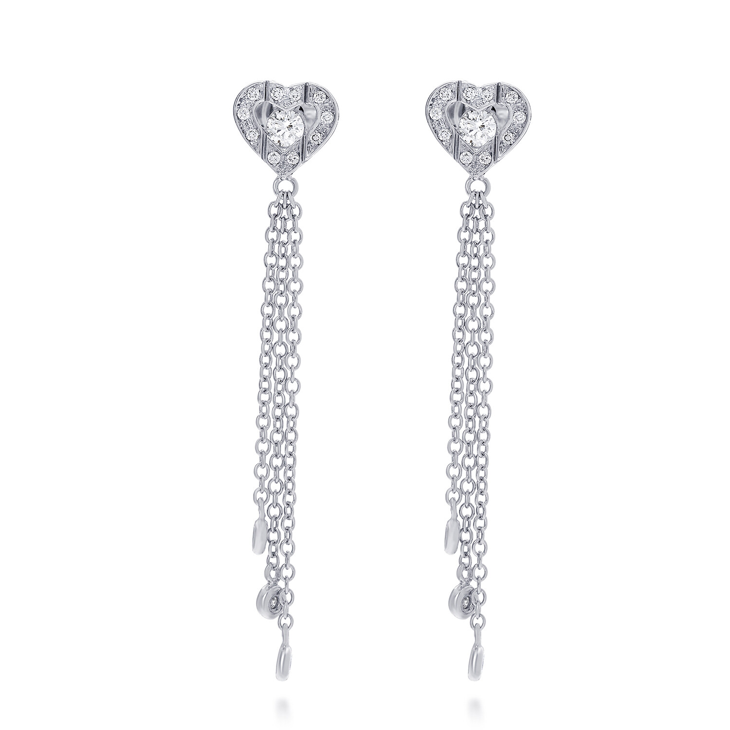 Damiani 18K White Gold Heart Design Diamond Drop Earrings // Store Display
