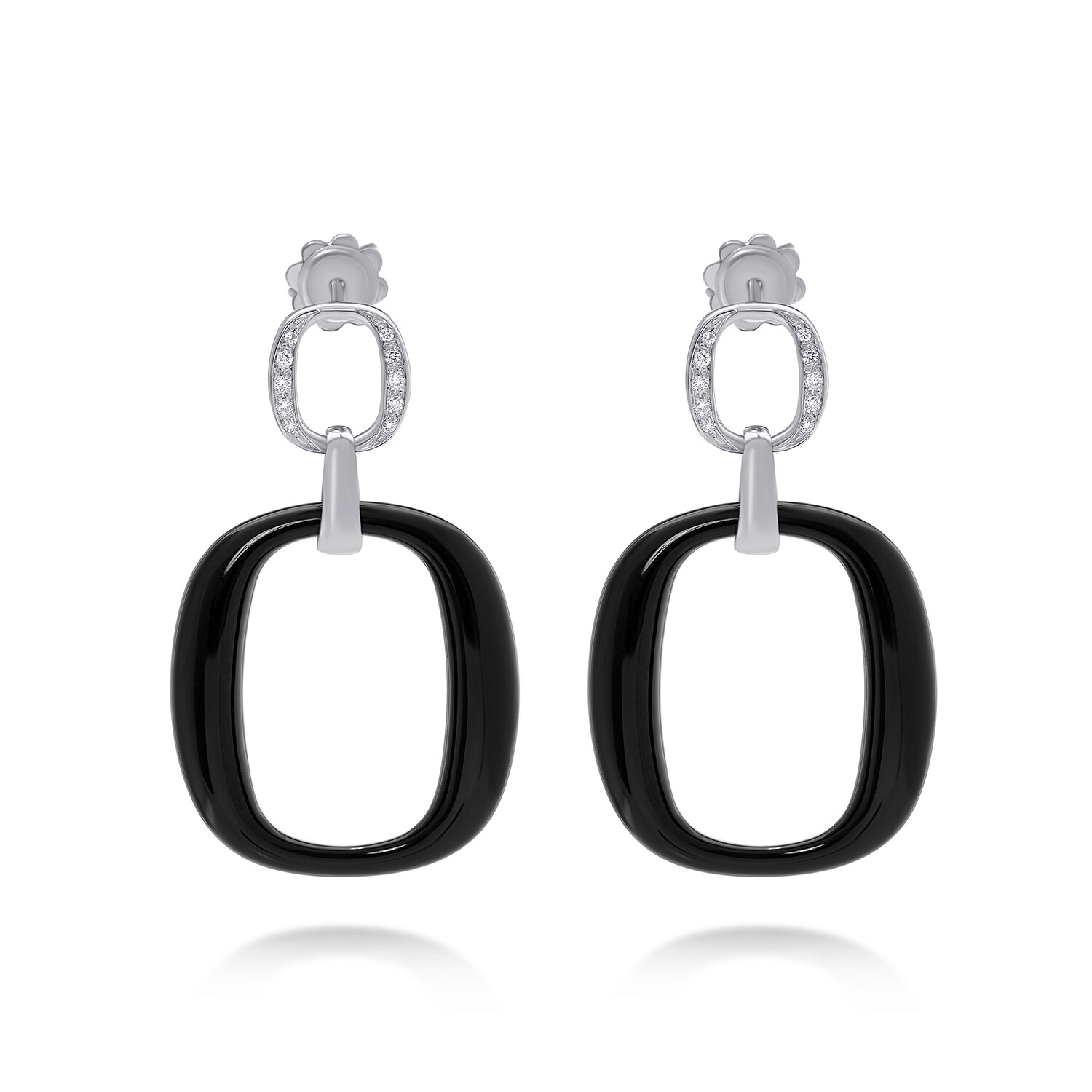 Damiani 18K White Gold Onyx + White Diamond Drop Earrings // Store Display