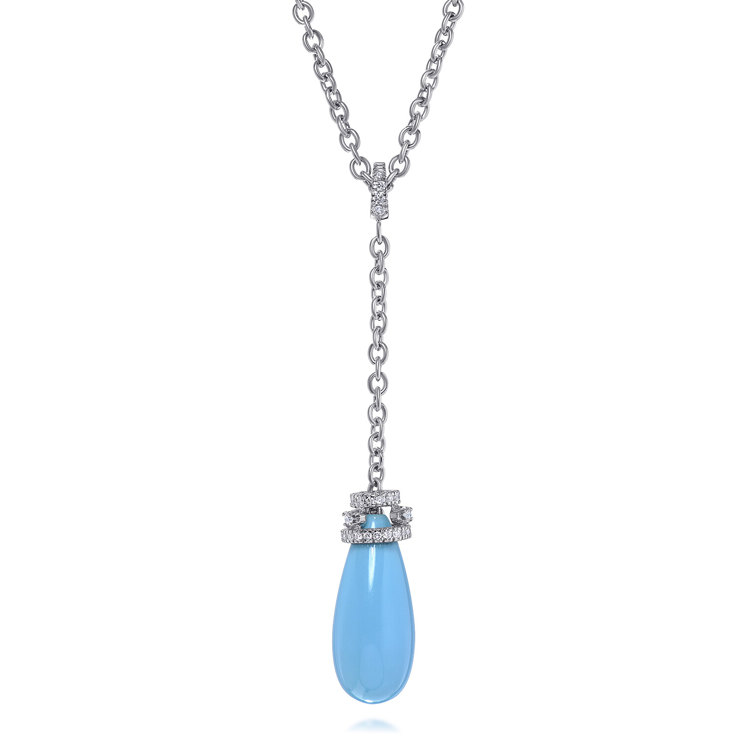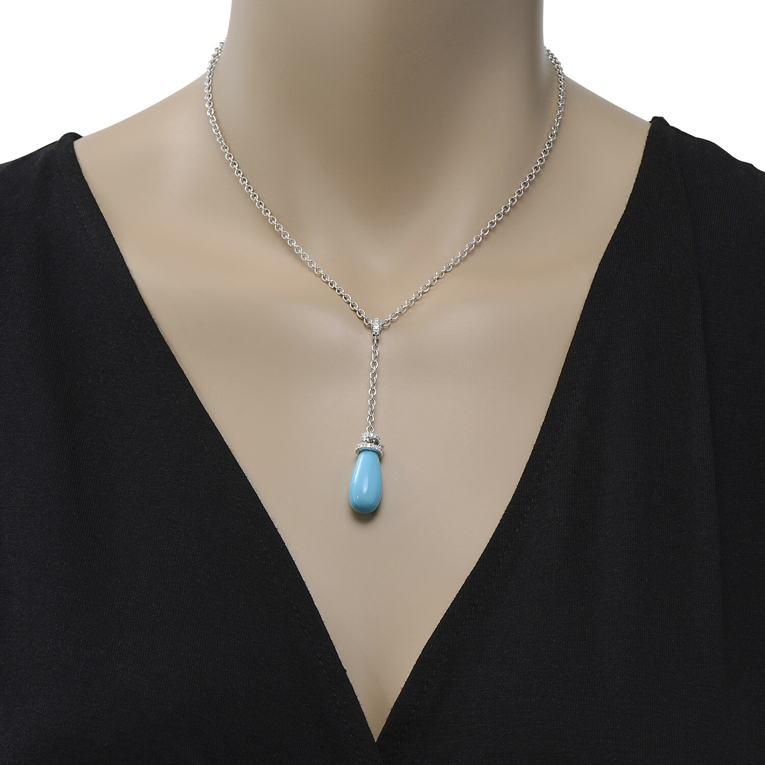 Damiani 18K White Gold Turquoise + Diamond Lariat Necklace // 17"-19" // Store Display