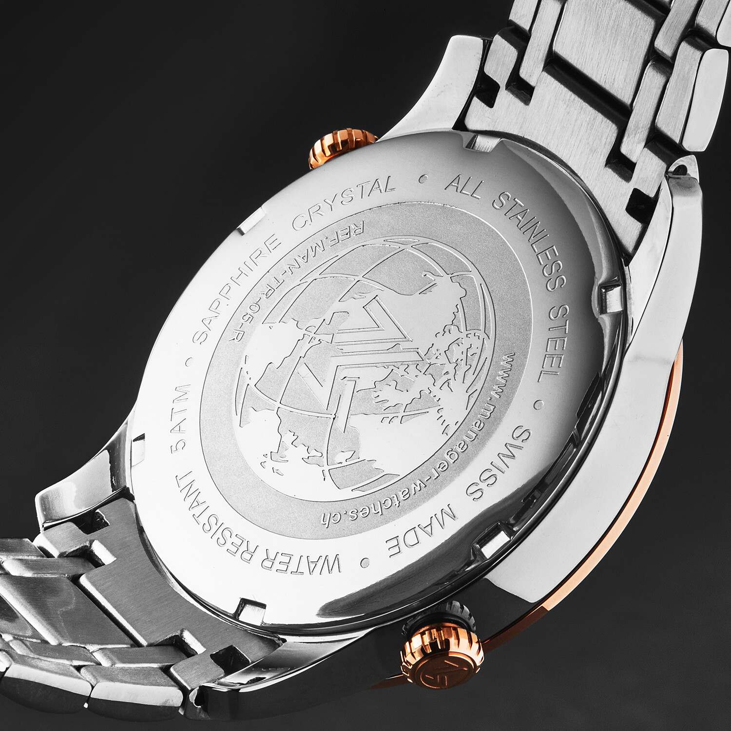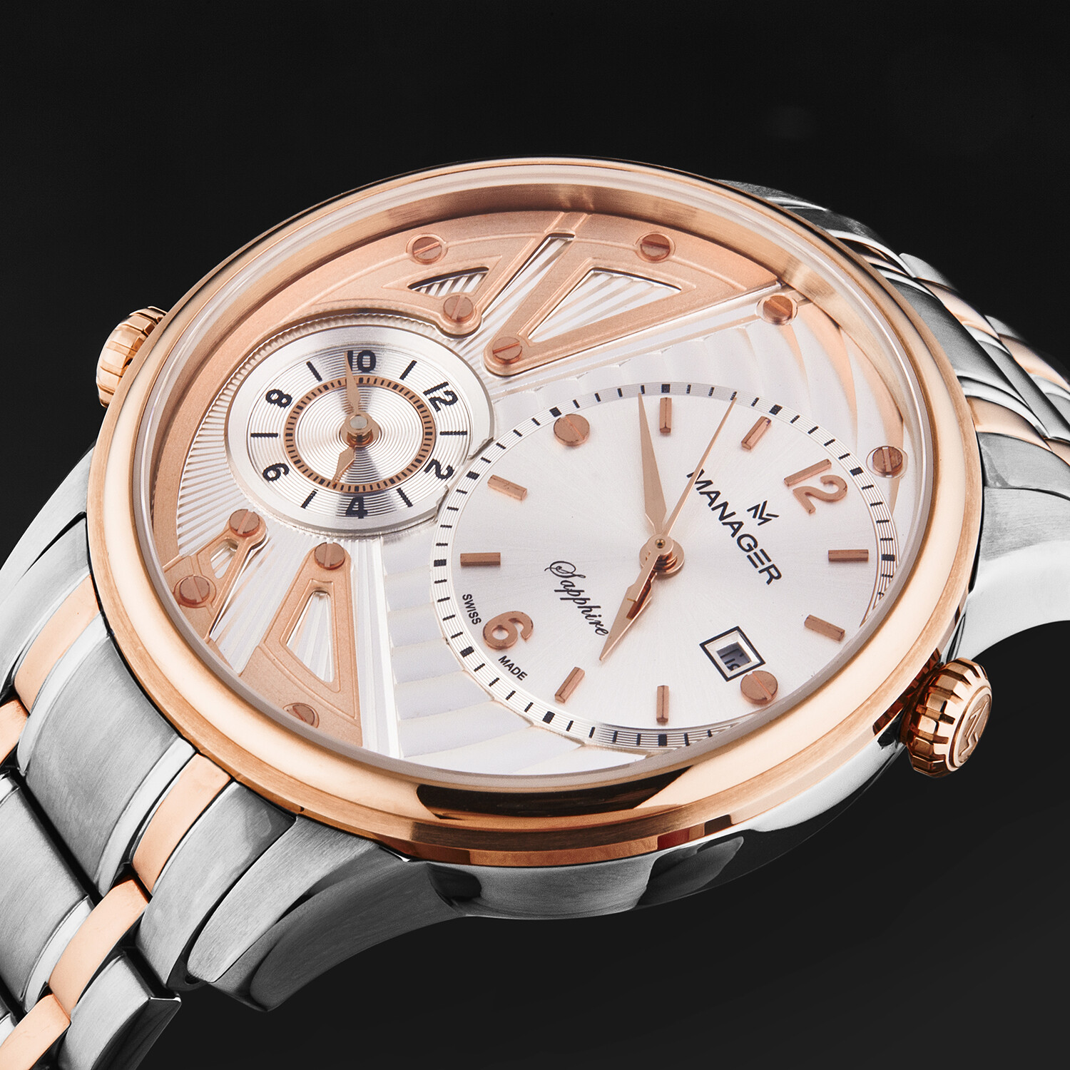 Based in Canton of Jura, Manager is a family business established in the center of Swiss watchmaking tradition and heritage. Their elegant designs bring a sporty sensibility to timepieces imbued with high-quality Swiss craftsmanship and uncompromising innovation.