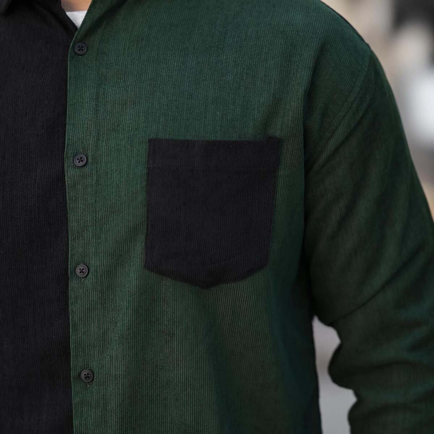 Block Chest Pocket Button-Up Shirt // Black + Green