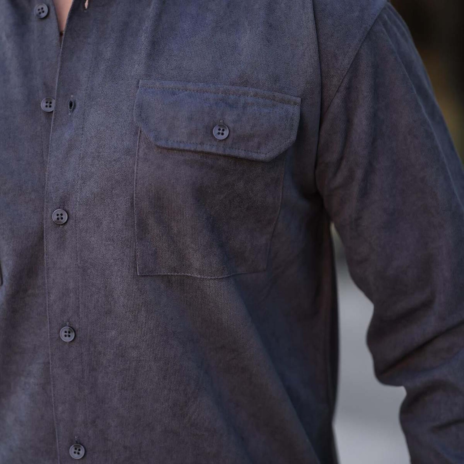 Corduroy Type Chest Pockets Button-Up Shirt // Smoked